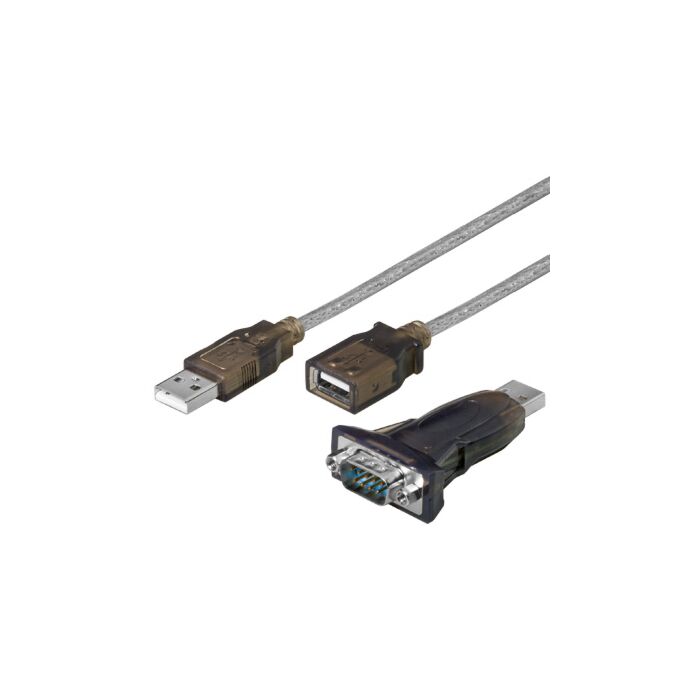 USB serial RS 232 konverterer / adapter / kabel USB "A" plug til 9 pin SUB-D plug For tilkobling av enheter med RS 232 interface. Minimalistisk design med USB forlengningskabel. Modem, testapparater, leker, service-interfaces, PBX og mye mer. - Prolific chipset - D-SUB 9 pin plugg - USB 1.1 og USB 2.0 kompatibel - Opp til 1 Mbps dataoverføringshastighet Windows 2000, XP, Vista, 7 og Windows 8 kompatibel.