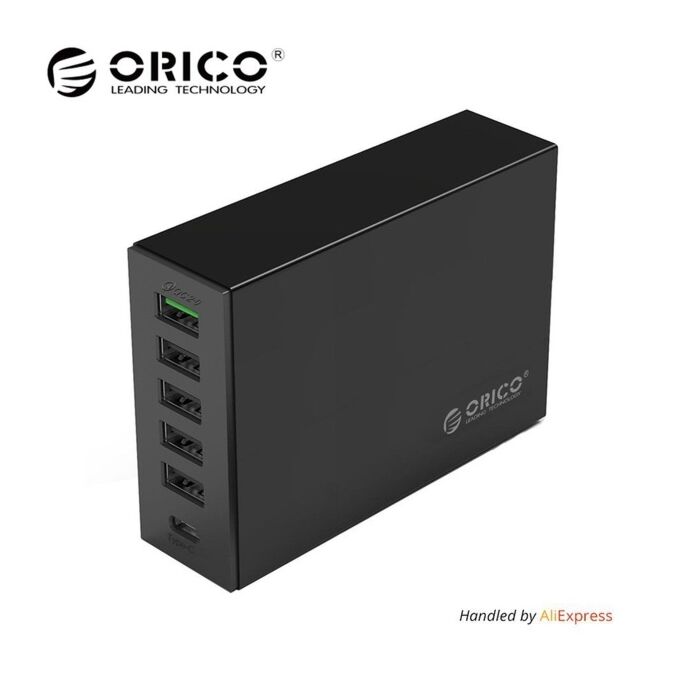 Orico multi-USB lader 6 porter USB-C og USB 110-240VAC input